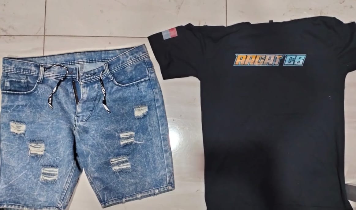 Dalam penangkapan tersebut, petugas juga berhasil mengamankan sejumlah barang bukti yang relevan dengan tindak pidana ini, antara lain satu potong celana jins berwarna biru dan satu helai baju warna hitam bertuliskan “Ragat CB”.