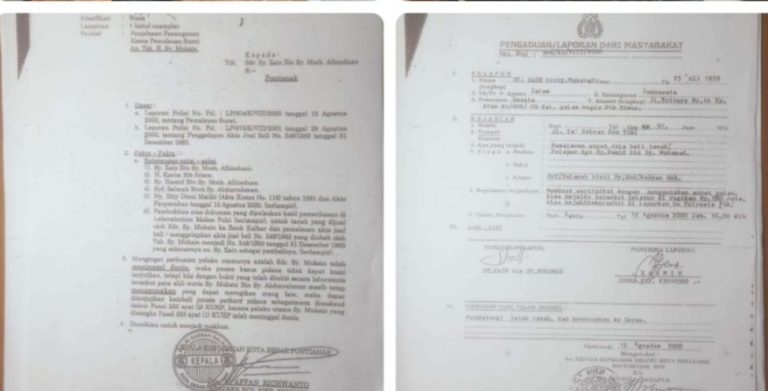 Sy Zain juga menambahkan, “Saya dapat beli dari Alm. Sy. Muchsin menggunakan SHM No.46/1982, Lalu sy lapor penggelapan dan Pemalsuan Surat di Poltabes Pontianak, menunggu lima tahun kemudian pada Tanggal 8 September 2005 saya mendapat Surat Dari Poltabes kota Pontianak dimana, Surat yang digunakan oleh Alm. Sy Mucksin untuk menerbitkan SHM No.46/1982 yang dimiliki oleh Dana pensiun Bank Kalbar Palsu/dipalsukan.”
